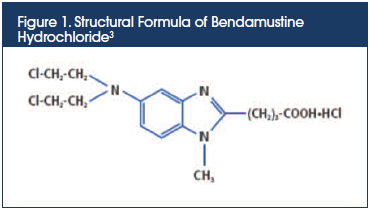 The approved indications for bendamustine vary by geographic location. Treanda (bendamustine hydrochloride) for Injection, for IV infusion, is approved in the United States for the treatment of patients with chronic lymphocytic leukemia (CLL), and for the treatment of patients with indolent B-cell non-Hodgkin lymphoma (NHL) that has progressed during or within 6 months of treatment with rituximab or a rituximab-containing regimen.3 Levact (bendamustine hydrochloride) is approved for the treatment of CLL in patients who cannot be treated with fludarabine combination therapy; for NHL in patients whose cancer progressed during or within 6 months of treatment with rituximab or rituximab-containing regimens; and for frontline treatment of multiple myeloma (MM) in combination with prednisone in patients older than age 65 years who are not eligible for autologous stem cell transplantation and who cannot be treated with thalidomide or bortezomib due to the presence of clinical neuropathy at diagnosis.2,5