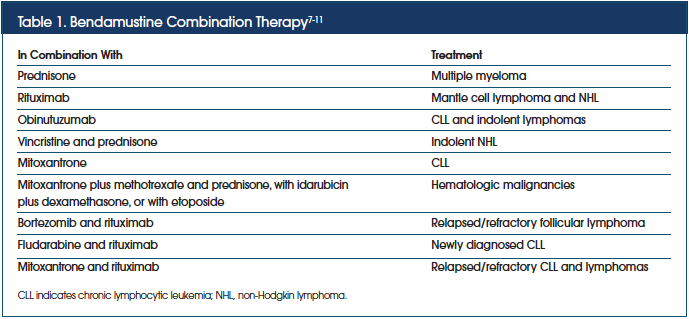 Bendamustine was approved by the FDA for the treatment of CLL on March 20, 2008, and on October 31, 2008, for the treatment of indolent B-cell NHL in patients whose disease progressed during or within 6 months of treatment with rituximab or a rituximab-containing regimen.8,12