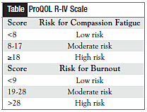 “Cancer nurses provide a high level of care to acutely ill patients and their family members. They give medications and treatments and emotional support, and they also share pieces of themselves,” she said in an interview with The Oncology Nurse-APN/PA. “Looking at the nurses I was working with, I was seeing that they were having what looked like burnout issues.” Askren and her colleagues identified the prevalence of compassion fatigue using the Professional Quality of Life: Compassion Satisfaction and Fatigue Subscales—Revision IV (ProQOL RIV) by B. Hudnall Stamm. The scale is designed to diagnose compassion fatigue and burn out (Table). The researchers offered the scale to all 32 nurses on the medical oncology unit and received 20 responses, for a response rate of 63%. All of the respondents were women; 19 of the 20 where white; mean age was 38 years, ranging from 23 to 60 years. Most (74%) were married.