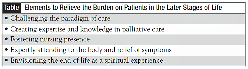 The modern hospice movement took root in the 1970s and it continues to evolve and spread, said Ferrell, who is a nursing research scientist with the City of Hope Comprehensive Cancer Center in Duarte, California. Although nursing practices vary according to a region’s resources and customs, Ferrell said she has come to recognize common elements in all nursing efforts to relieve the burden on patients in the later stages of life (Table). Ferrell said she made these observations during 34 years of oncology nursing experience and through her involvement in the End of Life Nursing Consortium (ELNEC) project. The launch of ELNEC’s palliative care training program in 2001 has brought her together with oncology nurses from all 50 states and 69 countries. “From Japan to Tajikistan, from Kenya to Russia, Romania to South Korea, nurses around the globe are improving the care of cancer patients at the end of life.” Oncology is largely focused on curing disease or prolonging cancer. Meeting the psychosocial needs of those patients who are beyond saving requires challenging this paradigm, said Ferrell. She cited nurses in Veterans Affairs (VA) hospitals as an example of individuals challenging the way their institutions handle death. VA hospitals have progressed from quickly, silently, and secretly moving the dead from their beds to the morgue to announcing each veteran’s death over the hospital’s audio system and inviting visitors and other patients to “join in the recognition of a life ending.” Each veteran is draped in a US flag and saluted as his of her body is escorted in dignity to the morgue. As part of its effort to transform how death is viewed, the VA also has expanded its commitment to educating its nursing staff on palliative care through the ELNEC project. Despite the increased attention to palliative care concerns over the decades, Ferrell said her research has identified several areas where it consistently falls short, including the relief of physical symptoms and help for psychosocial concerns such as anxiety, depression, distress, and uncertainty. Multidisciplinary teams need to adopt aggressive strategies for preventing and alleviating symptoms in patients with cancer and to screen patients for psychosocial issues, rather than waiting to respond when they escalate to a crisis. One of the most important steps to being a skilled provider of palliative care is showing up. Many patients and families crave the presence of another person as they deal with their grief, and the nurse’s presence is comforting even if she is unable to provide direct relief of the patient’s suffering. Ferrell said in today’s culture of “technology-driven healthcare,” death is viewed as a physiologic experience that represents failure. Nurses must continue to change this paradigm for patients with cancer and work to “create an alternate vision that the end of life is a spiritual experience,” said Ferrell.