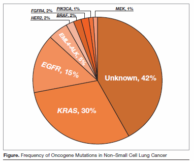 In addition to updating information on EGFR and KRAS gene status, the guidelines discuss the EML4-ALK gene translocation. It is estimated that aberrations of EGFR, KRAS, and ALK drive >60,000 new cases of NSCLC in the United States each year, and each is an important predictor of response to various targeted therapies.