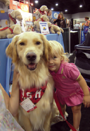 Sharon Riesen, MD, head of the residency program at Loma Linda Children’s Hospital in California, calls the gift set her “mind–body medicine tool.” She adds that when presented properly, Josh’s story in I’ll Be O.K. and the plush version of Josh can be “concretely linked in the child’s mind such that the plush Josh becomes a living, breathing thing…a companion.” To Riesen, there is a difference between just a toy and a therapeutic tool: Although a stuffed animal, in itself, is oftentimes used successfully to provide a degree of comfort to a sick child, the set—Josh plush and I’ll Be O.K.—becomes a therapeutic collaborator, the child’s unwavering partner in facing fears…transferring the idea that if Josh can get through his medical procedure, then so can the child. It is for that reason that Josh and Friends does not distribute the plush Josh independent of the book. The Josh and Friends Project would not be complete without a real-life main character, Josh. Lange’s beautiful, red bandana–clad canine is the third golden retriever Josh to represent Josh and Friends. Josh is the embodiment of all the best characteristics of the breed. He has become a hit at pediatric and veterinarian conferences across the United States. The familiar “There’s Josh,” is repeatedly heard at American Academy of Pediatrics, National Association of Pediatric Nurse Practitioners, and American Veterinary Medical As - sociation (AVMA) gatherings. This amazing dog personifies the loving and supportive Josh puppy in I’ll Be O.K.