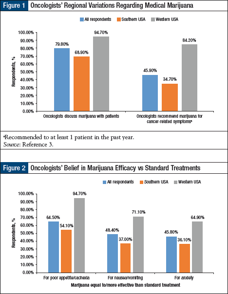 Oncologists who practice in the South were less likely than those practicing in the West to discuss this topic with their patients or to recommend medical marijuana for symptom management.
