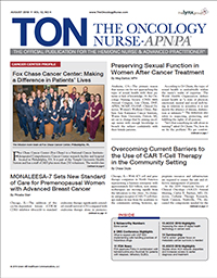 The August issue of The Oncology Nurse-APN/PA (TON) is filled with important news and insights for today’s oncology nurse. We begin our coverage with a profile of the Fox Chase Cancer Center, Philadelphia, PA, as we speak with Elizabeth Capaldi, RN, BSN, OCN, who discusses her role as a nurse in the center’s infusion room, the significant life events that influenced her choice to become an oncology nurse, the rewards of her job, and what she finds exciting in the evolving field of oncology. Read More ›